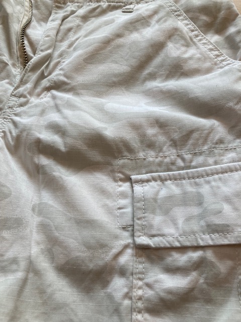 この白のハーフパンツはよく見るとカモフラ柄なんですよ!