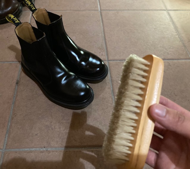 同じく馬毛でブラッシング➡固く絞ったタオルで拭く